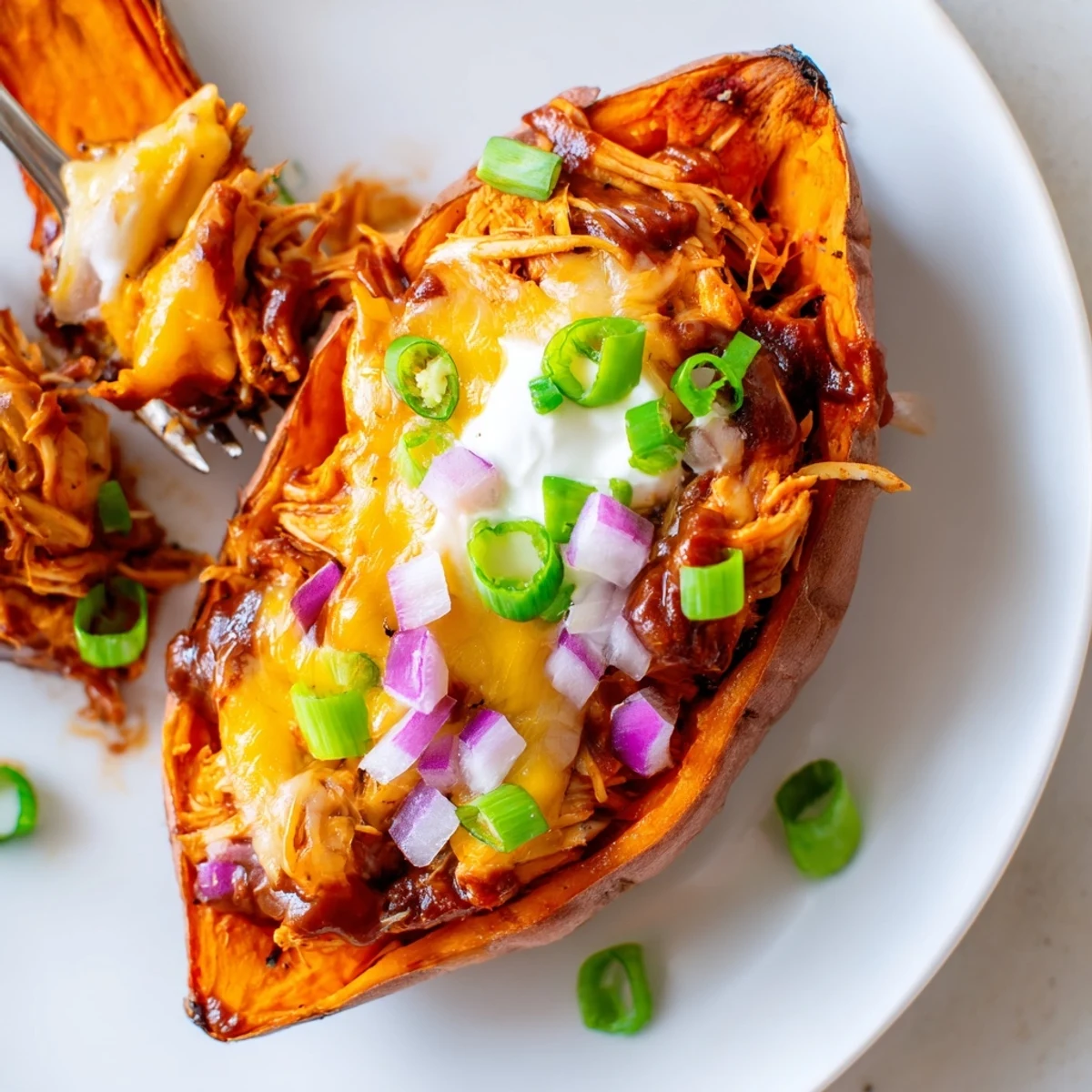 These loaded sweet potatoes combine tender roasted tubers with smoky BBQ chicken and melted cheddar for a comforting, satisfying dinner. The natural sweetness of the potatoes pairs beautifully with tangy barbecue sauce, while fresh toppings add brightness and crunch.