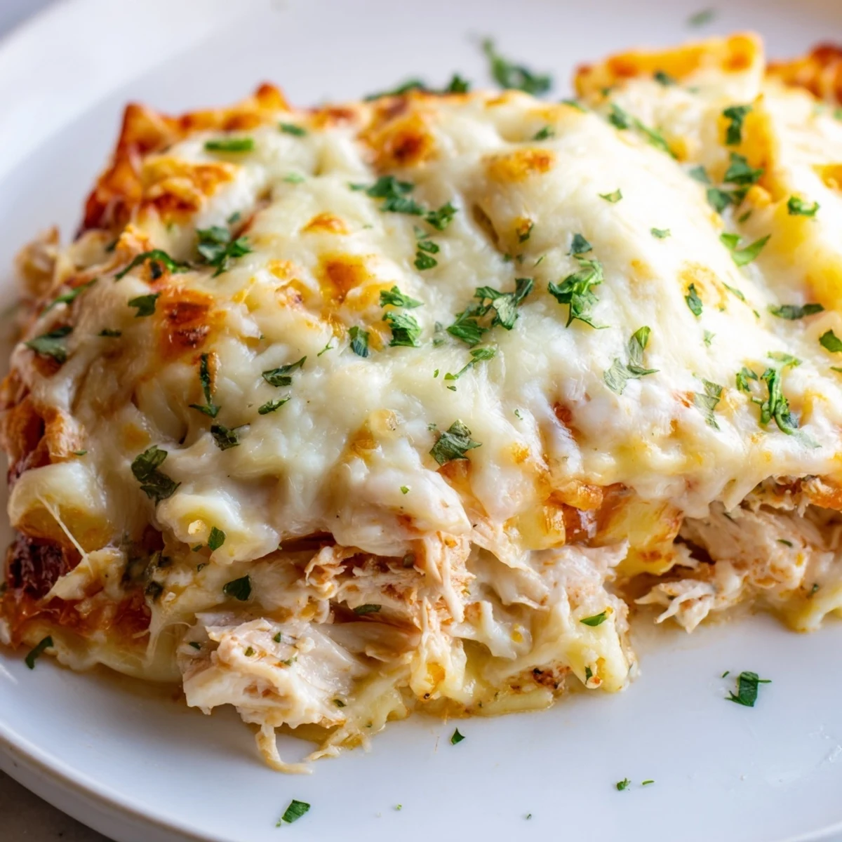 This comforting baked dish combines tender cheese ravioli with juicy shredded chicken, all coated in a rich and creamy Alfredo sauce. After assembling in a baking dish, generous layers of mozzarella and Parmesan create a golden, bubbly crust. The entire casserole bakes in about 35 minutes, resulting in a satisfying Italian-American meal that serves four.