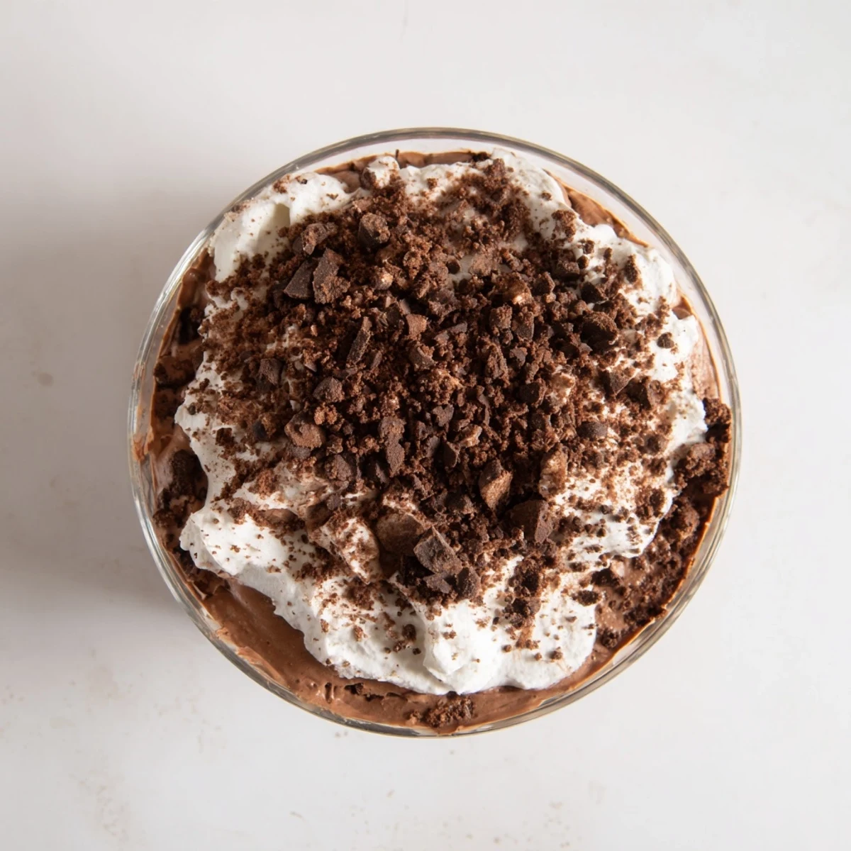 This decadent layered dessert combines rich chocolate pudding made with almond milk and heavy cream, fluffy sweetened whipped cream, and a crunchy almond-cocoa crumble topping that mimics classic dirt cake. The no-bake preparation comes together in just 25 minutes of active time, then chills until perfectly set. Each serving delivers deep chocolate flavor while keeping carbs impressively low at just 2g net carbs. The texture contrast between silky smooth pudding, airy whipped cream, and crisp chocolate-almond crumbs creates an indulgent experience perfect for gatherings or meal prep.