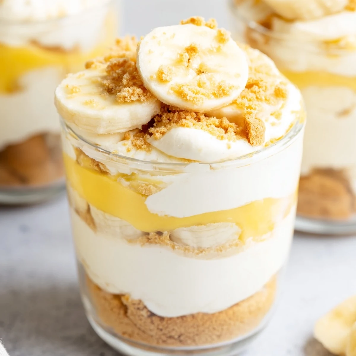 Refrigerate the cups for at least 2 hours before serving to allow layers to set properly and flavors to meld together. For best results, avoid leaving them uncovered for extended periods as the banana slices may oxidize and brown.