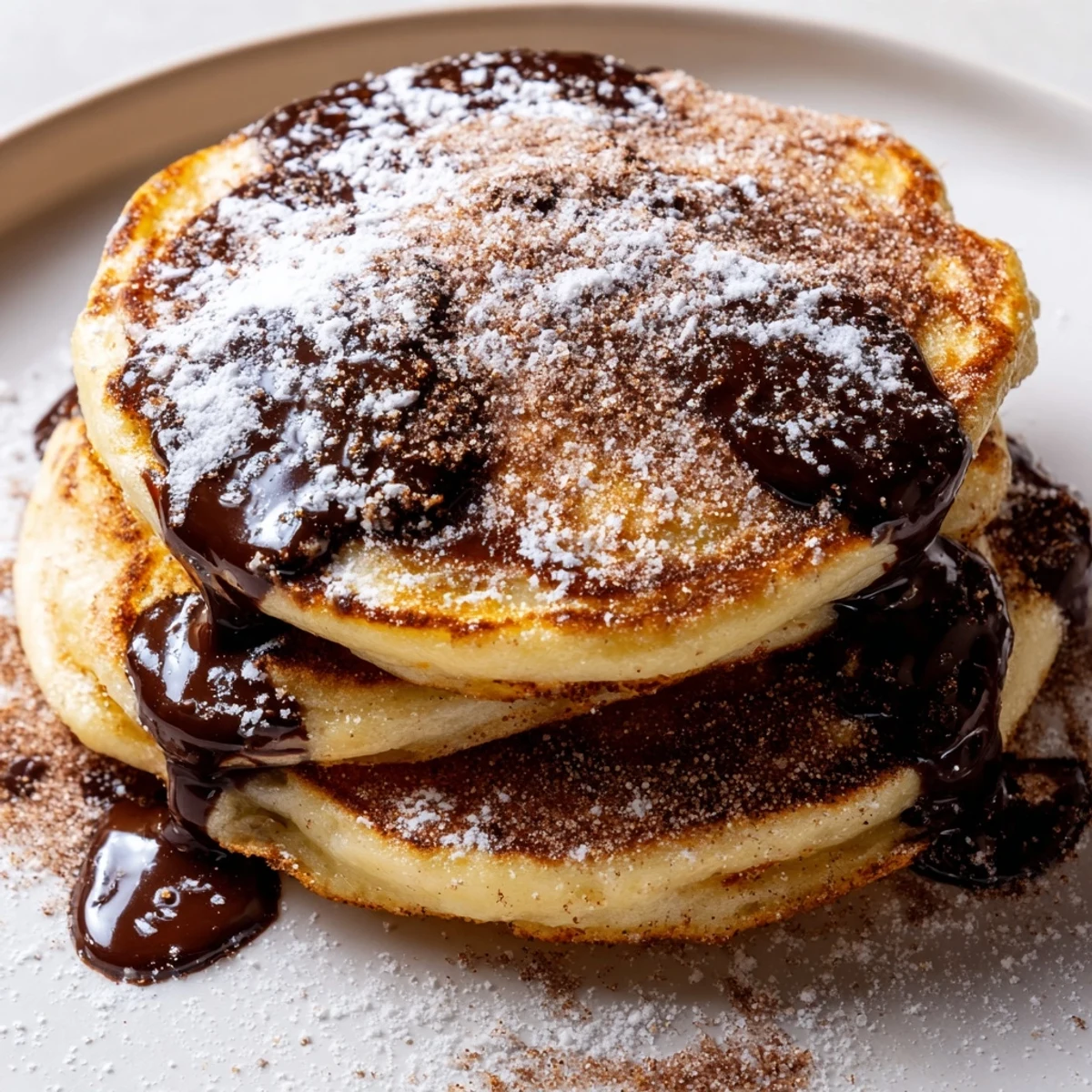 The batter comes together quickly with pantry staples, while the chocolate sauce melts into a silky smooth dipping companion. Dust the warm pancakes generously with the cinnamon sugar mixture for that authentic churro experience.