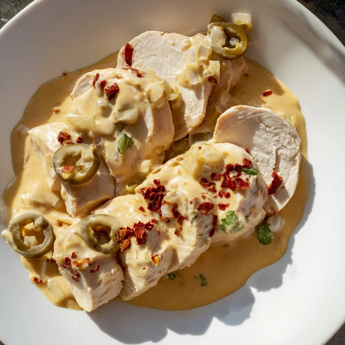 This dish features juicy chicken breasts pan-seared to golden perfection, then nestled in a velvety sauce made with fresh jalapeños, heavy cream, and Monterey Jack cheese. The garlic and spices add depth, while the jalapeños bring just the right amount of heat. Everything simmers together until the flavors meld into a rich, satisfying sauce that coats every bite.